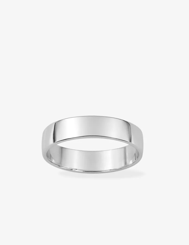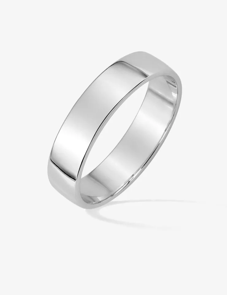 Cette alliance ruban en argent rhodié 925 ‰ est simple et élégante. Elle a une largeur de 4,5 mm et pèse 2,55 g.