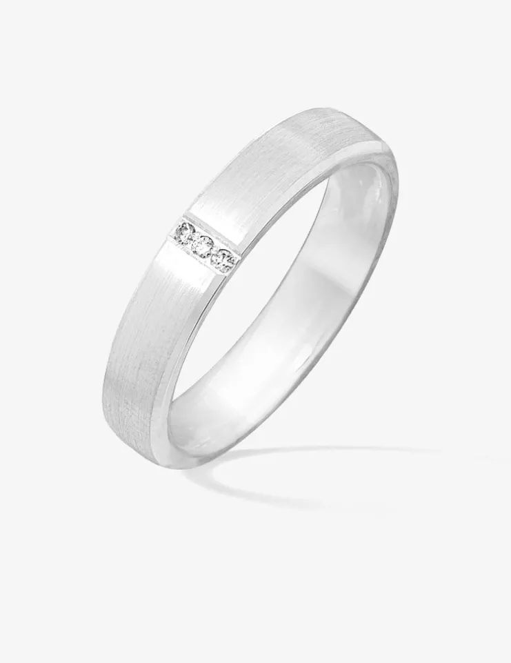 Alliance or blanc 750 ‰ avec 3 diamants – Mariage