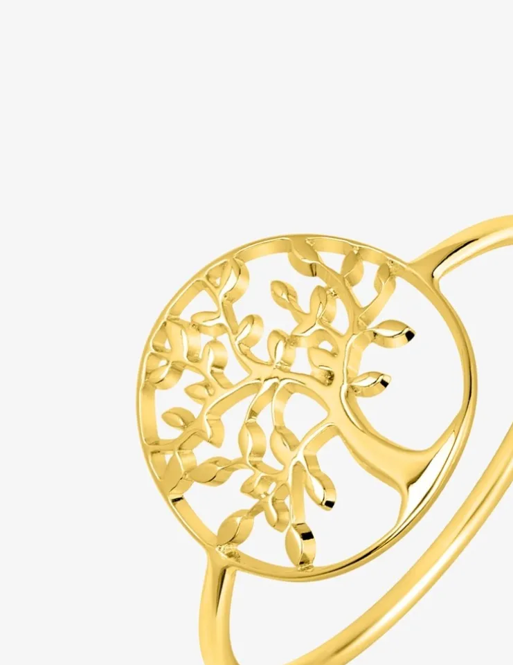 Cette bague possède un motif d’arbre de vie de 10 mm de diamètre. Fait en plaqué or, ce bijou est tendance et porteur de sens.