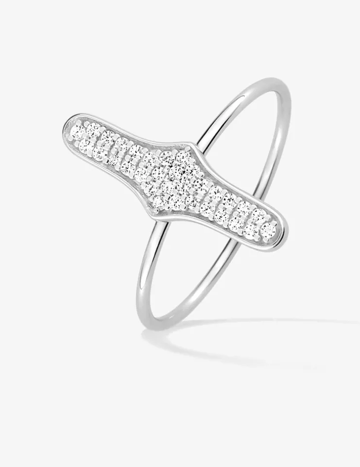 Bague en argent gris 925‰, ornée d’un élément ovale vertical serti d’oxyde de zirconium blanc, qui apporte une touche d’élégance à votre style. Cette bague est disponible en mesure standard 54, avec une option ajustable allant de 48 à 62, garantissant un ajustement parfait pour chaque porteur. Avec un poids de 1,06 g, elle est légère et confortable pour un port quotidien. Ce bijou allie sophistication et modernité, faisant de lui un choix idéal pour compléter votre collection.
