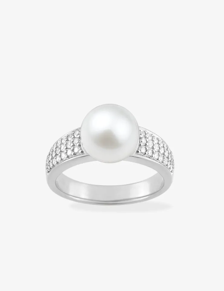 Bague argent rhodié 925 ‰, pavage oxyde de zirconium et perle 9 mm SO OR