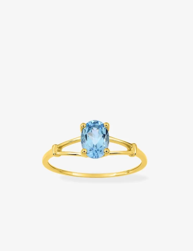 Bague en or jaune 375 ‰ et topaze bleue traitée SO OR