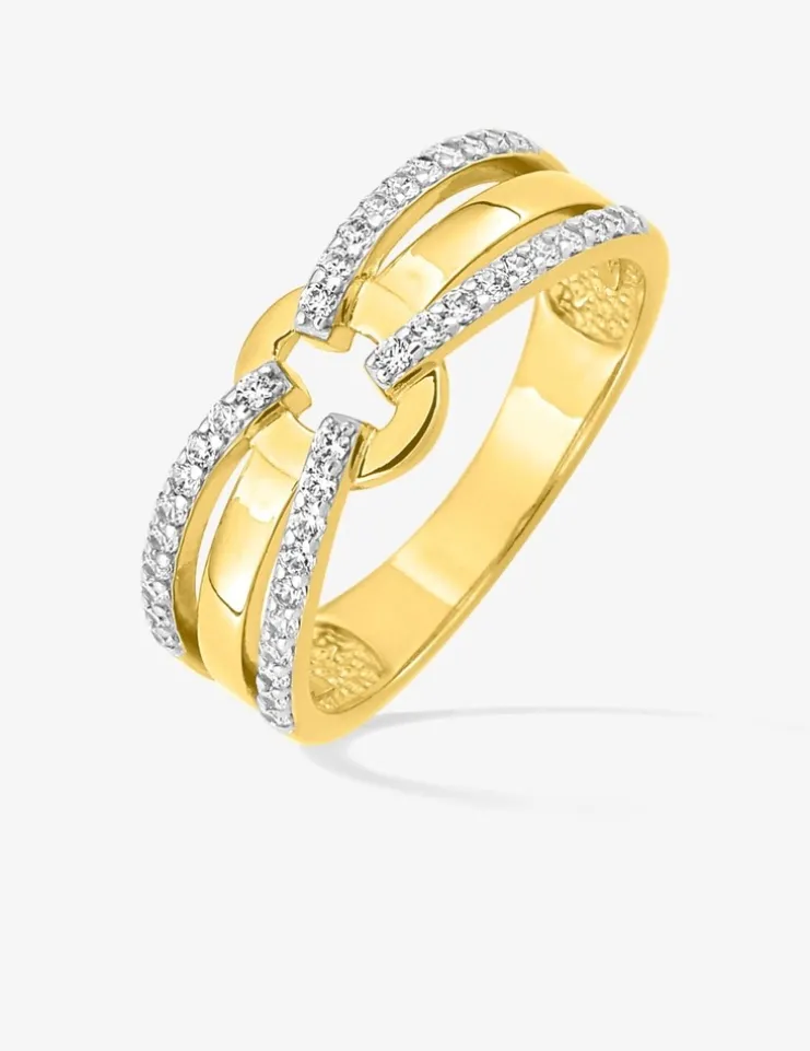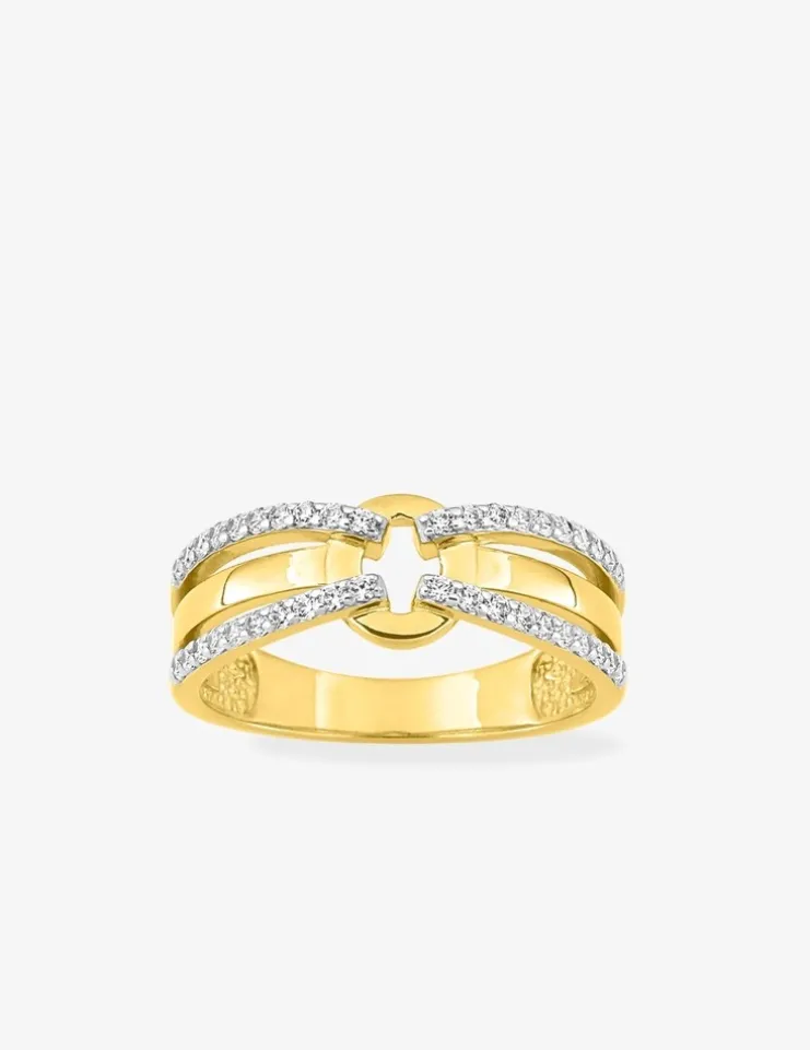 Bague en plaqué or oxyde blanc anneaux entrelacés fantaisie SO OR