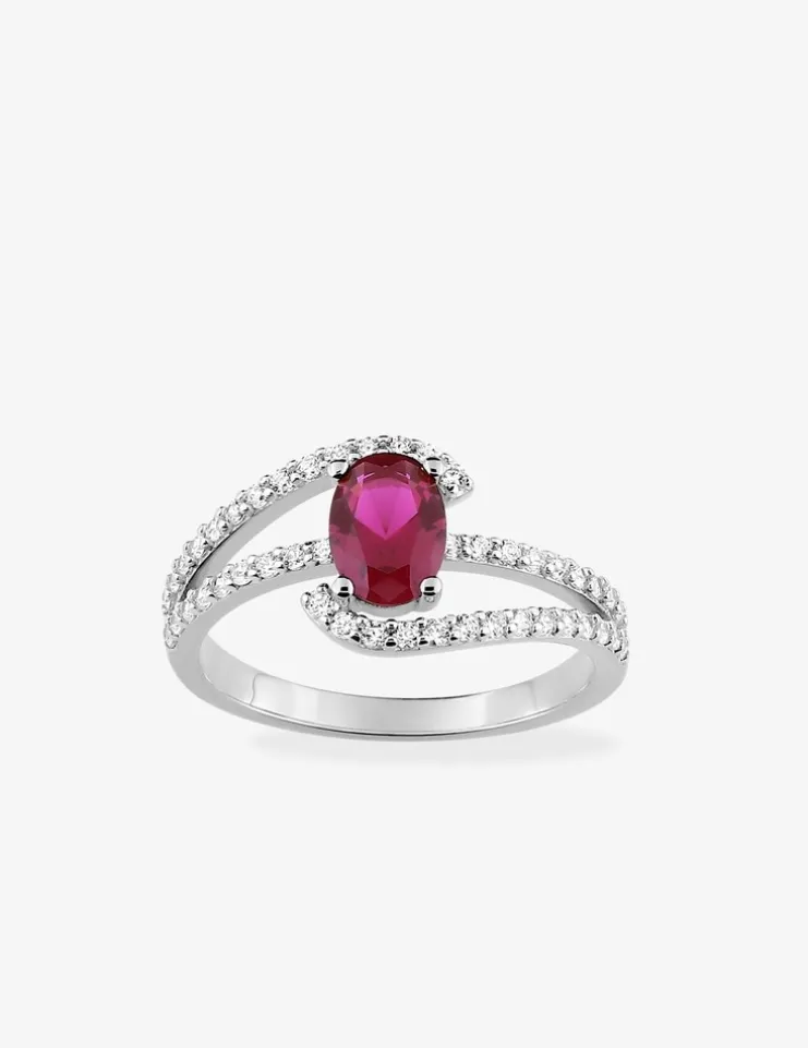 Bague fantaisie argent rhodié 925 ‰ et oxyde de zirconium rouge SO OR