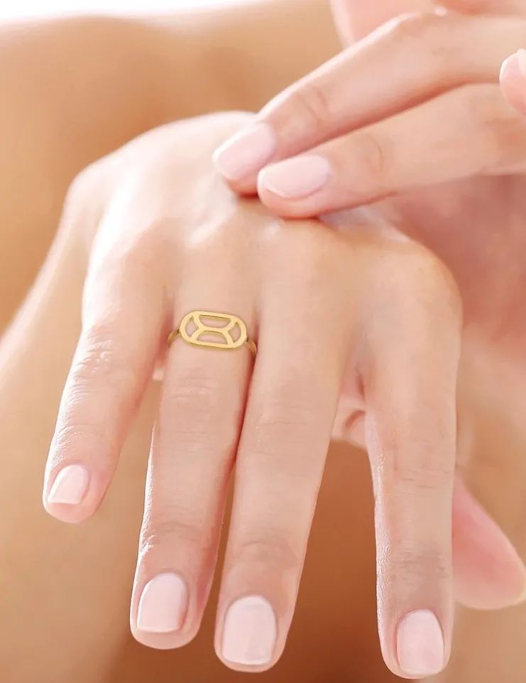 Laissez-vous tenter par la douceur des lignes de cette bague Graphique en plaqué or. Élégante et tendance vous pourrez la porter en toute circonstance, de jour pour terminer une tenue décontractée comme lors de vos soirées.