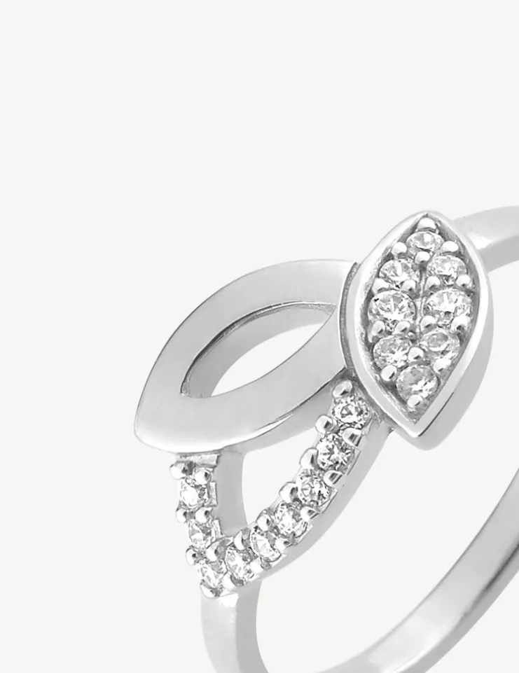Bague feuilles argent 925‰ rhodié et oxydes de zirconium SO OR