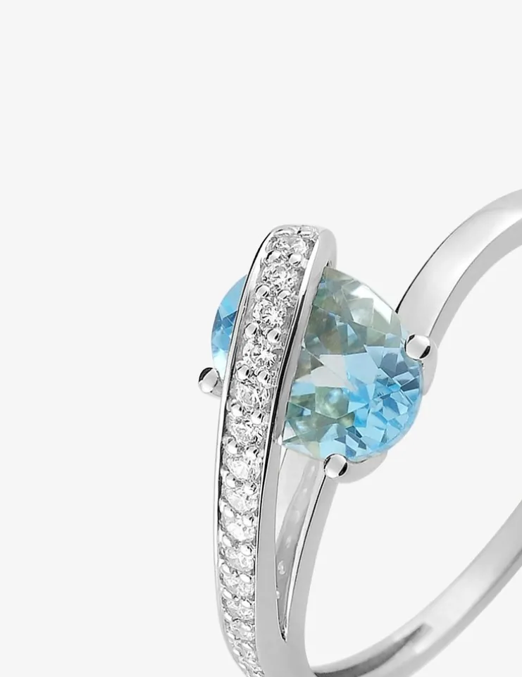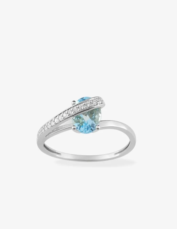 Bague or 750 ‰ blanc avec oxydes de zirconium et topaze bleue SO OR