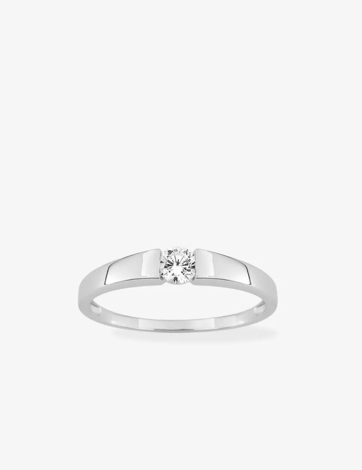Bague or blanc 750 ‰, oxyde de zirconium 0,20 ct SO OR