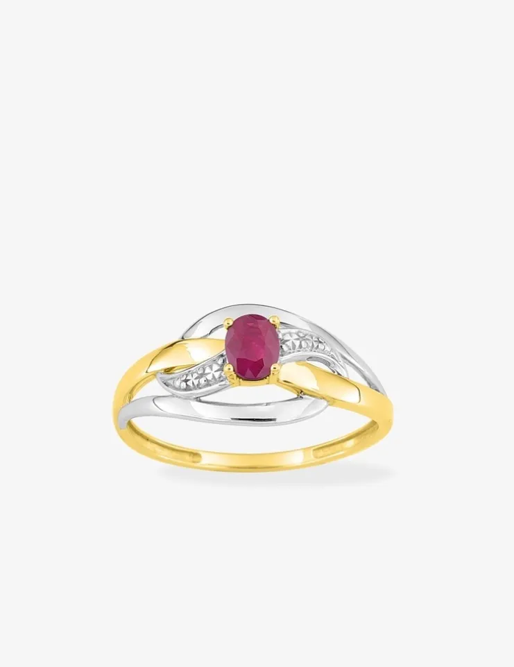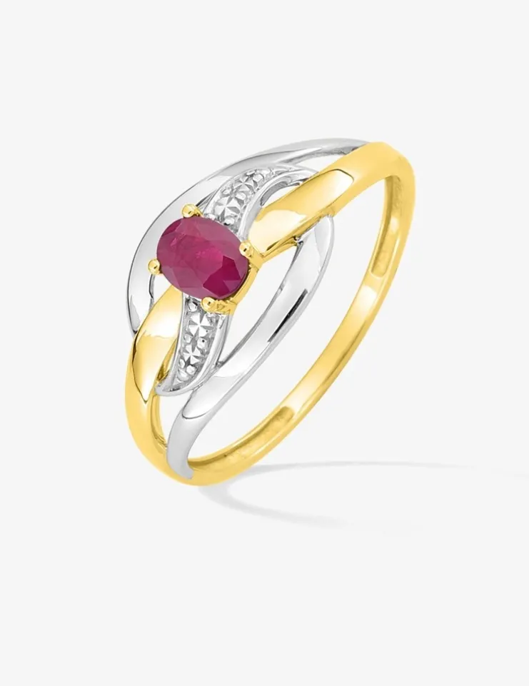 Bague or jaune 750 ‰, rhodium et rubis ovale SO OR