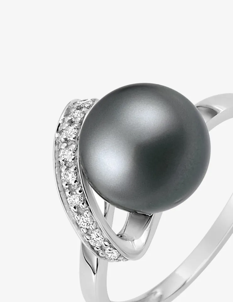 Bague perle de culture Tahiti et diamant en or blanc 750‰ SO OR