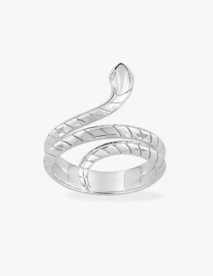 Cette bague représentant un serpent entrelacé autour du doigt est faite d’argent rhodié 925 ‰. Son poids est de 4,30 g et elle mesure 20 mm de hauteur.