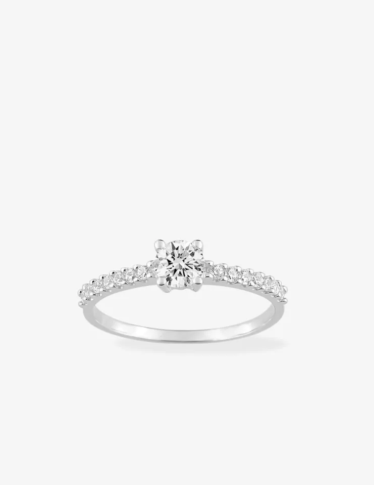 Bague solitaire accompagné or blanc 375 ‰ et oxydes de zirconium SO OR