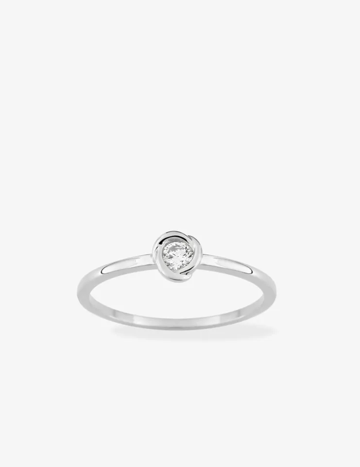 Bague solitaire or 375 ‰ blanc diamant synthétique 0,10 ct serti clos SO OR
