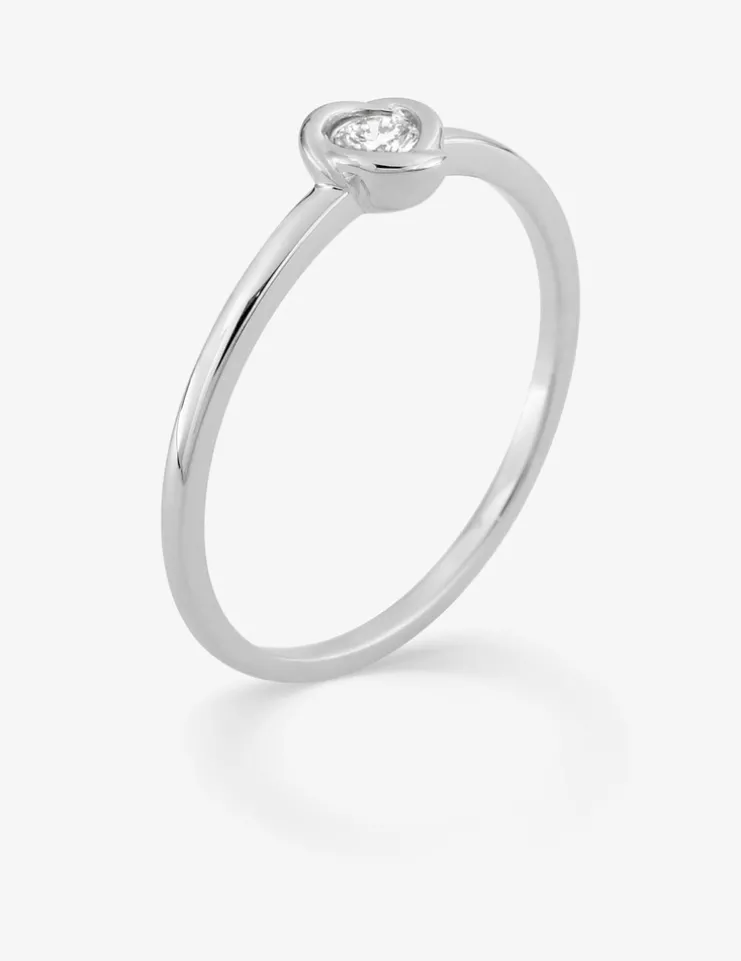Bague solitaire en or 375 ‰ (9 carats) blanc ornée d’un diamant synthétique de 0,10 ct tenu dans un serti clos. Cette bague classique et élégante affiche un poids d’or moyen de 1,10 g. pour la taille 54 et rehaussera vos tenues avec une touche de brillance subtile.
