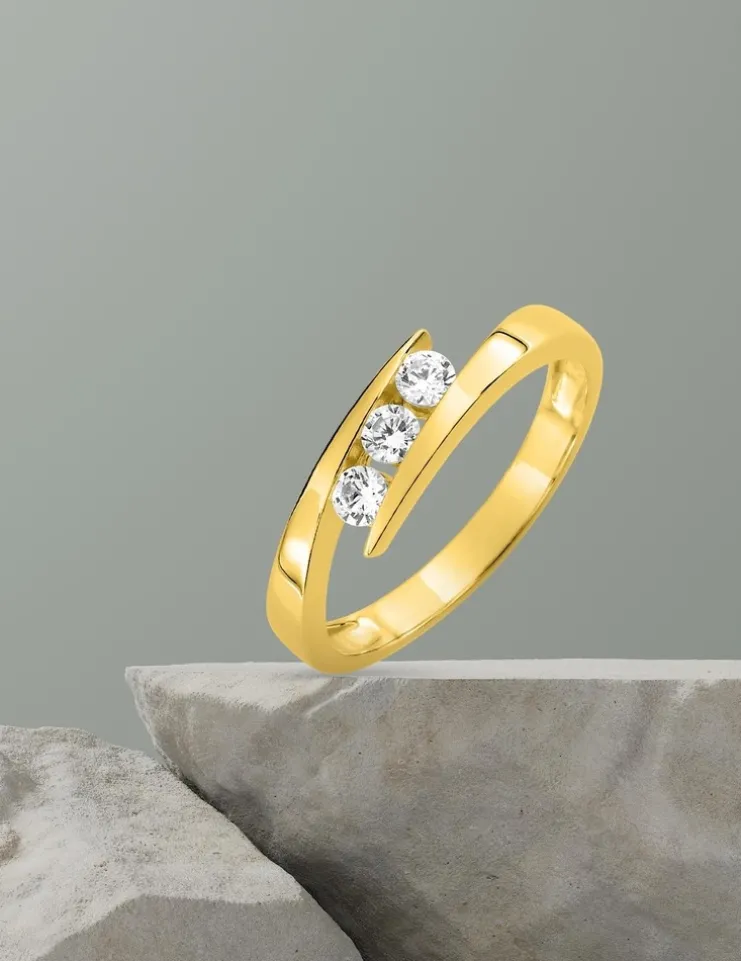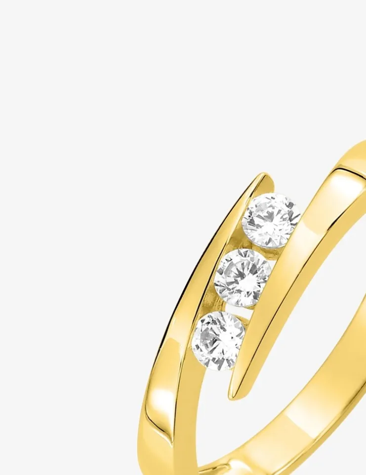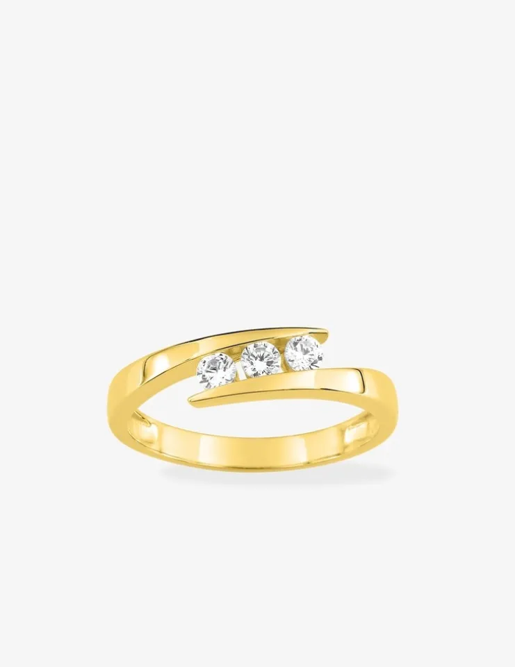 Bague trilogie or jaune 375 ‰ oxyde de zirconium SO OR