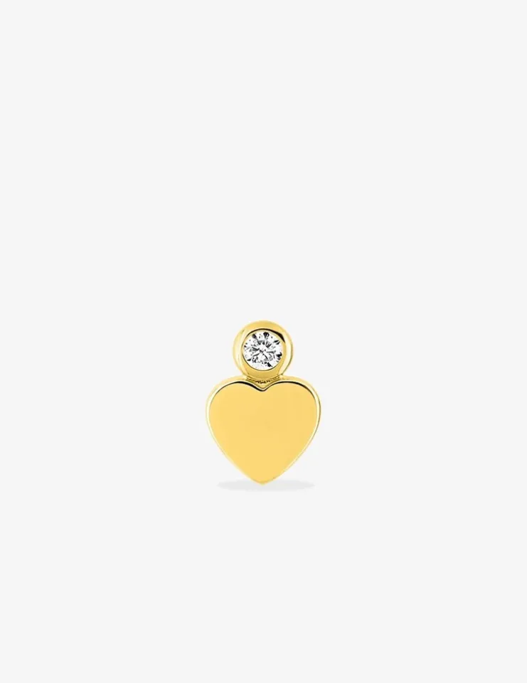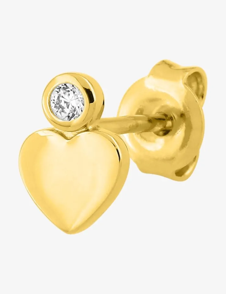 Boucle d'oreille clou à l'unité plaqué or, motif coeur et oxyde de zirconium SO OR
