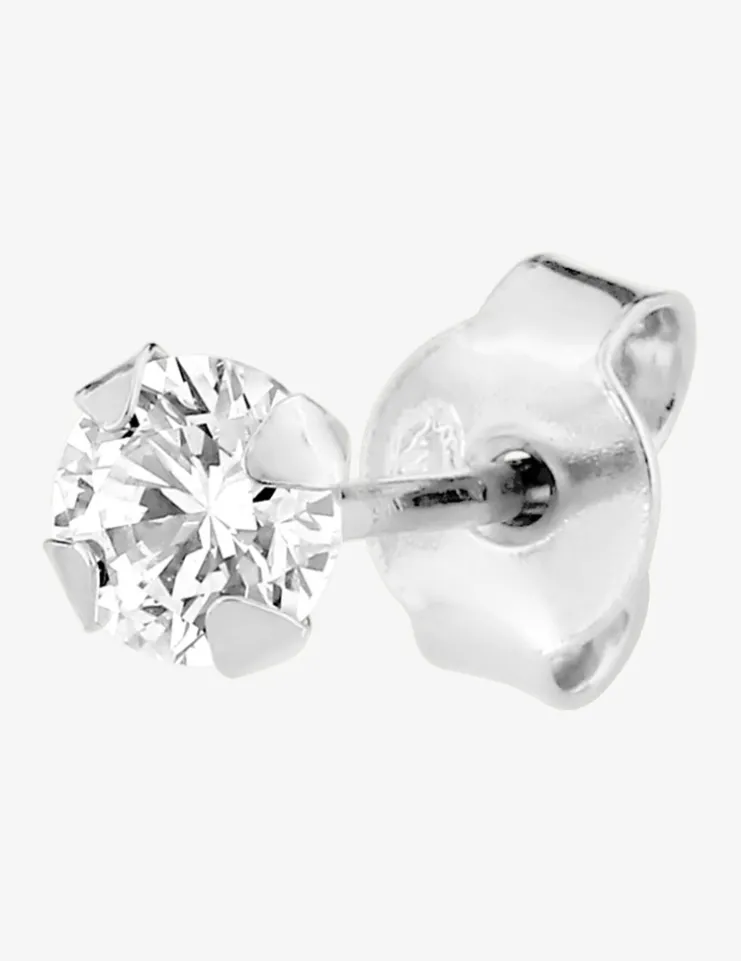 Boucle d'oreille clou unitaire en argent 925 ‰ rhodié et oxyde de zirconium SO OR