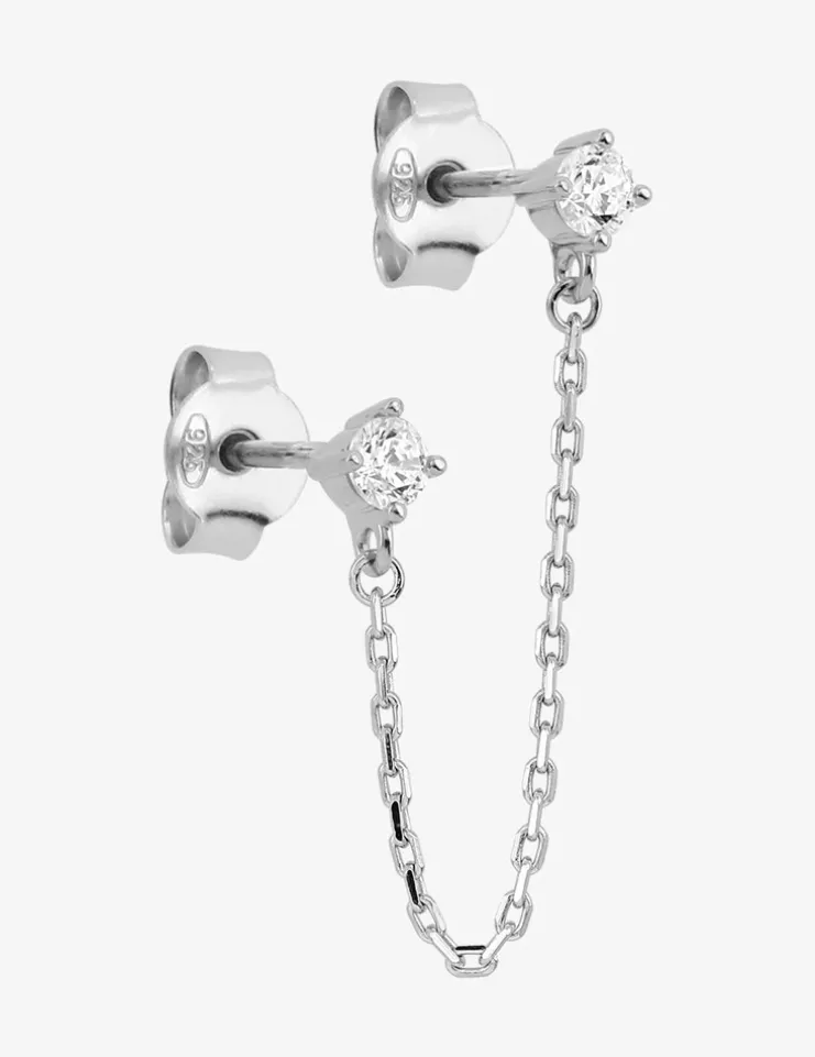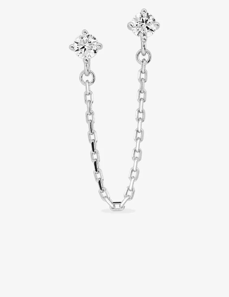 Boucle d'oreille double trous à l'unité en argent 925 ‰ rhodié et oxydes de zirconium SO OR