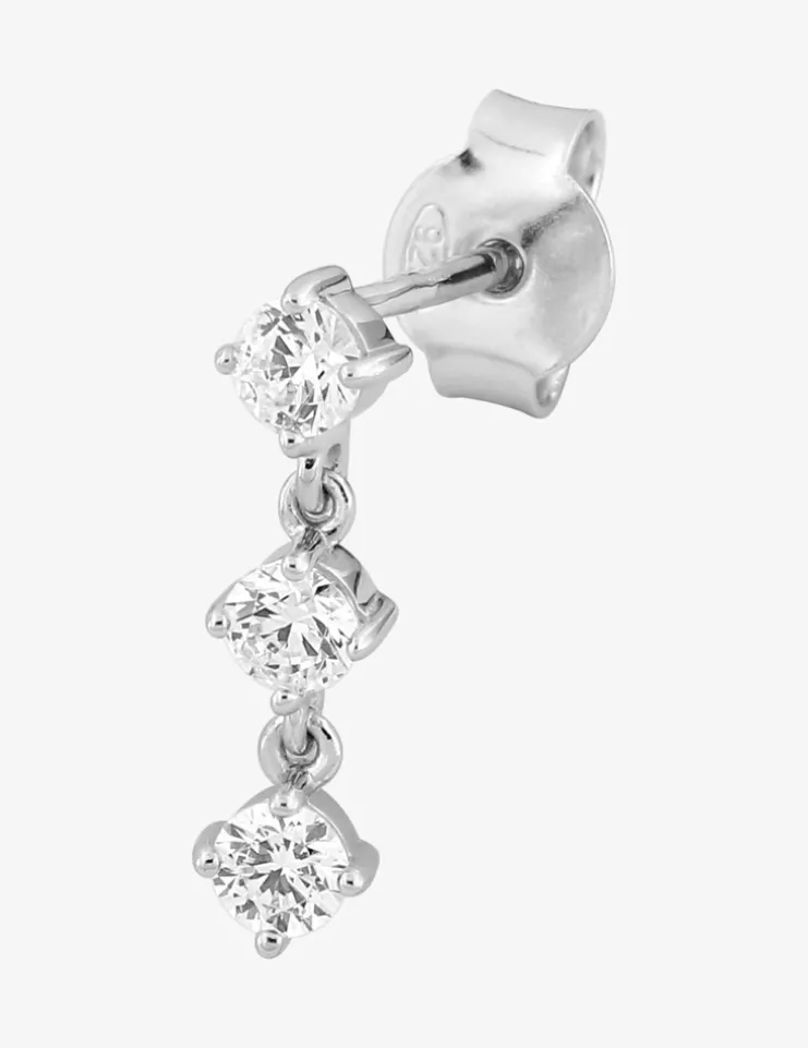 Boucle d’oreille pendante en argent 925 ‰ rhodié, vendue à l’unité, ornée de trois oxydes de zirconium étincelants. Avec un poids léger de 0,67 g et une longueur de 14 mm, cette boucle se porte en toute légèreté, offrant un confort optimal tout au long de la journée. Elle se ferme en toute sécurité grâce à son fermoir poussette, garantissant une fixation fiable et pratique. Parfaite pour rehausser vos tenues, cette boucle pendante se distingue par son design raffiné.