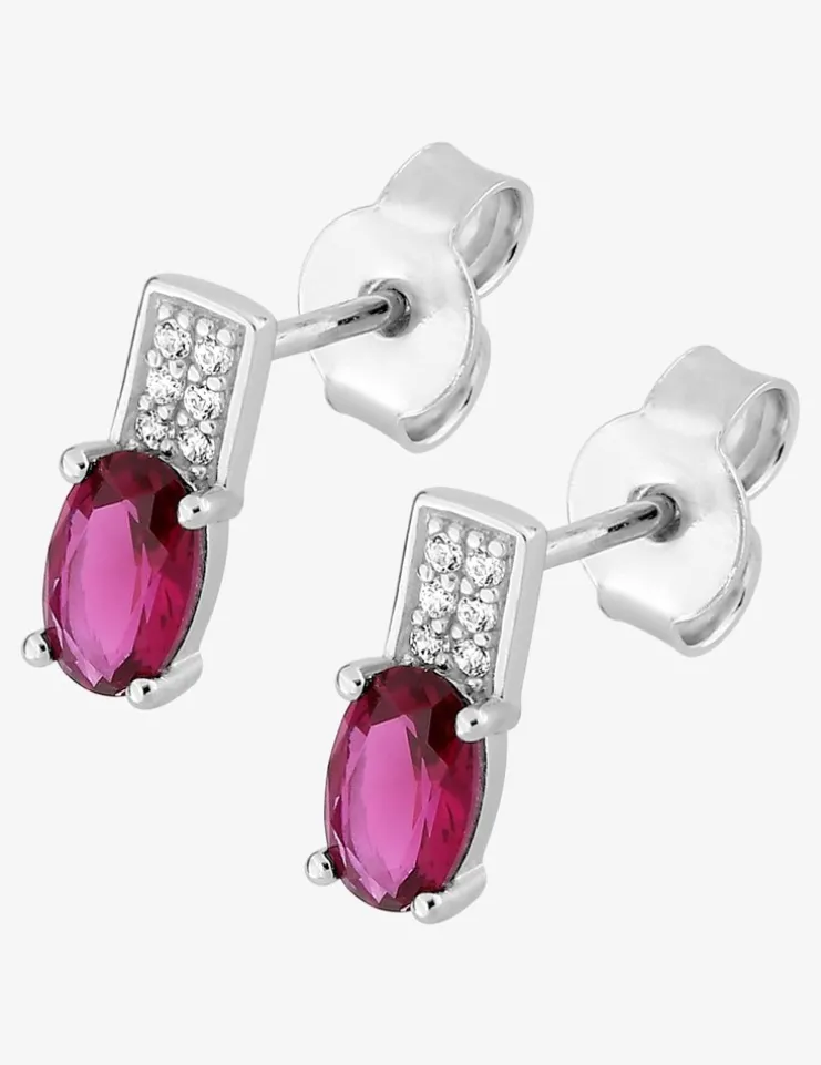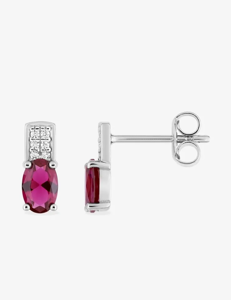 Boucles d'oreilles argent 925‰ rhodié et oxyde de zirconium rouge ovale accompagné SO OR