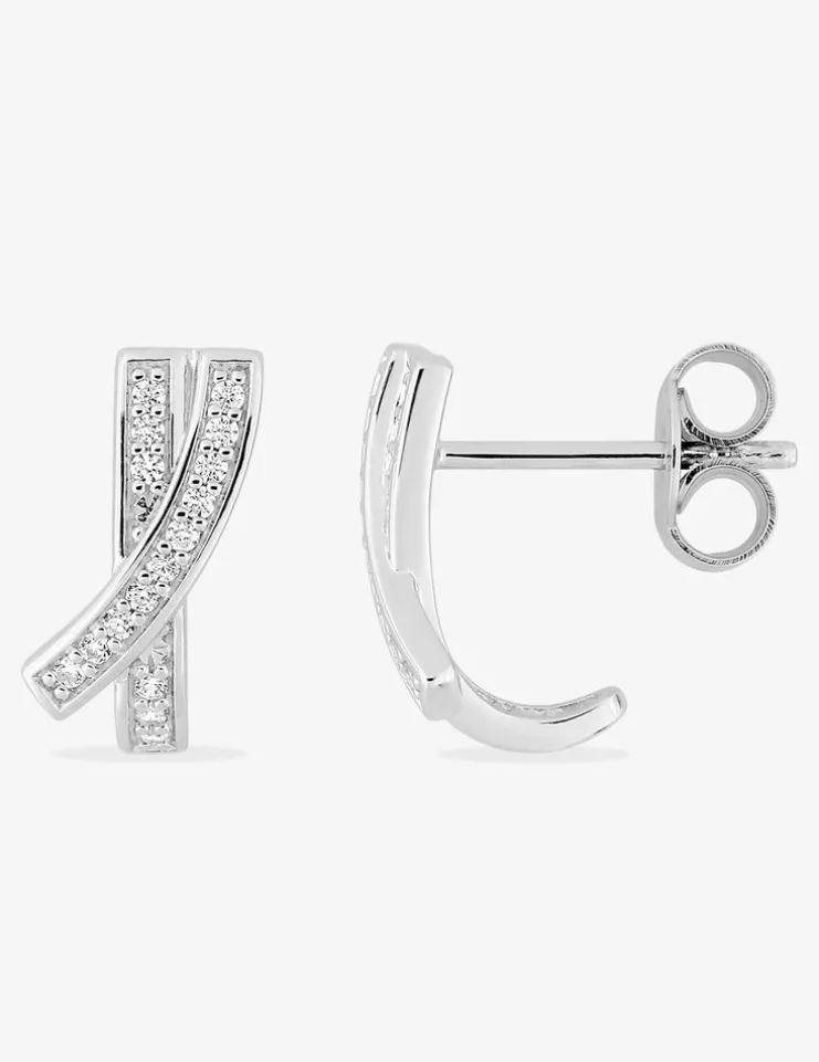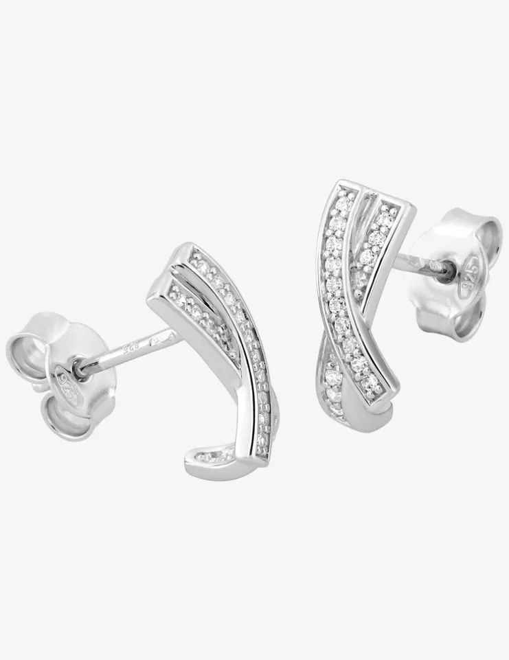 Boucles d'oreilles argent 925 ‰ rhodié croisées avec oxydes de zirconium SO OR