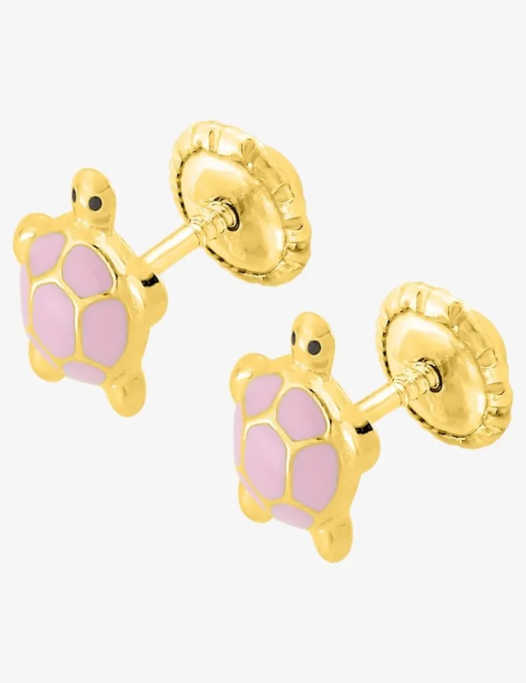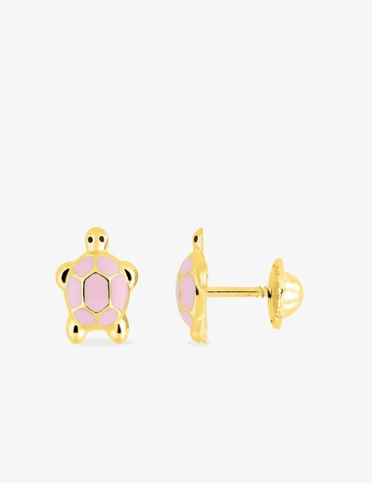 Boucles d'oreilles clou or 750‰ laqué émail tortue rose fantaisie à vis SO OR