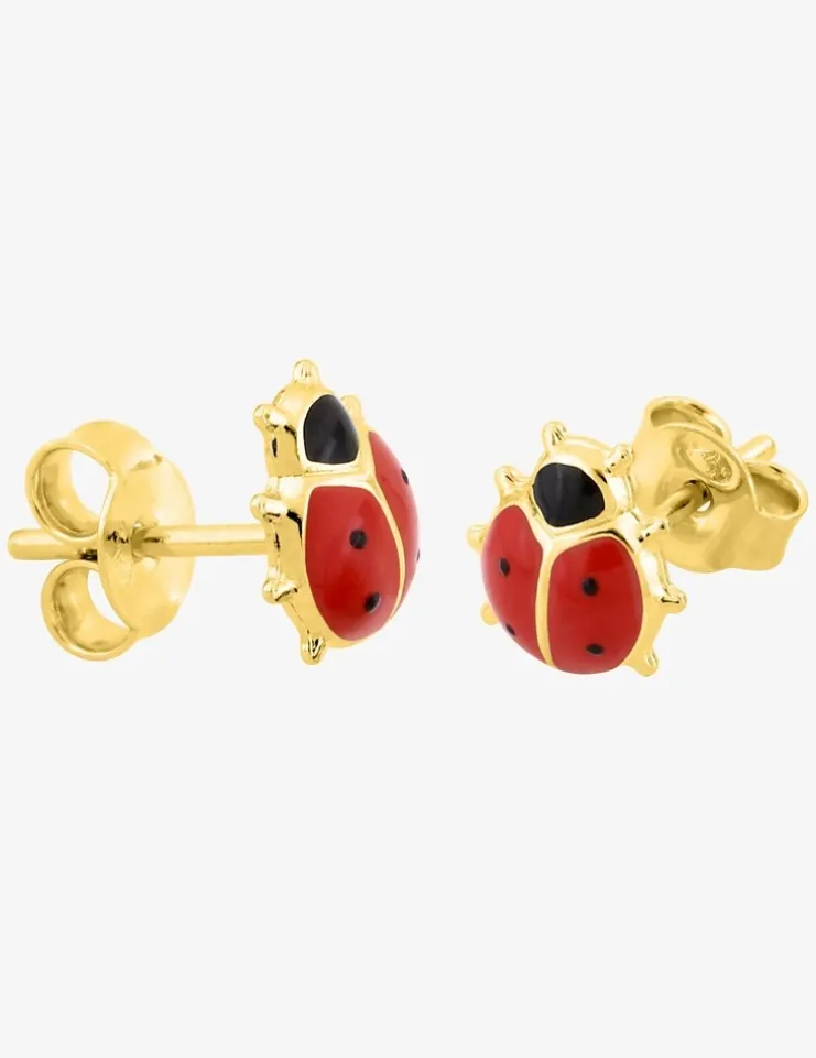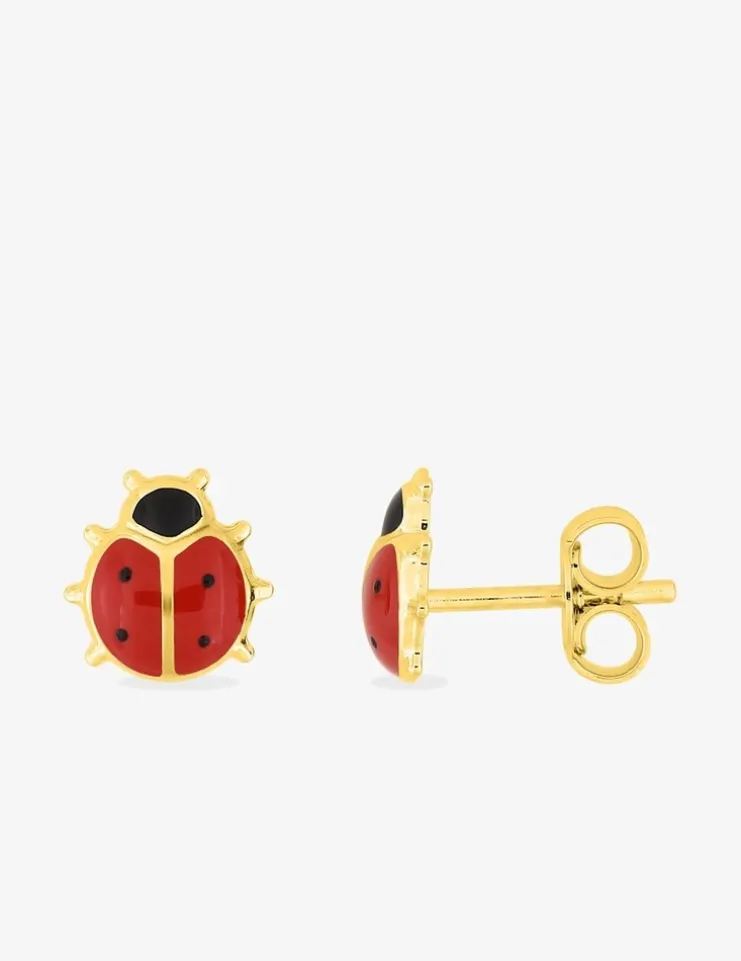Ces boucles d’oreilles clous au motif de coccinelle en plaqué or et laque rouge et noire raviront les plus jeunes. Elles mesurent 7 mm de hauteur pour 5 mm de largeur.
