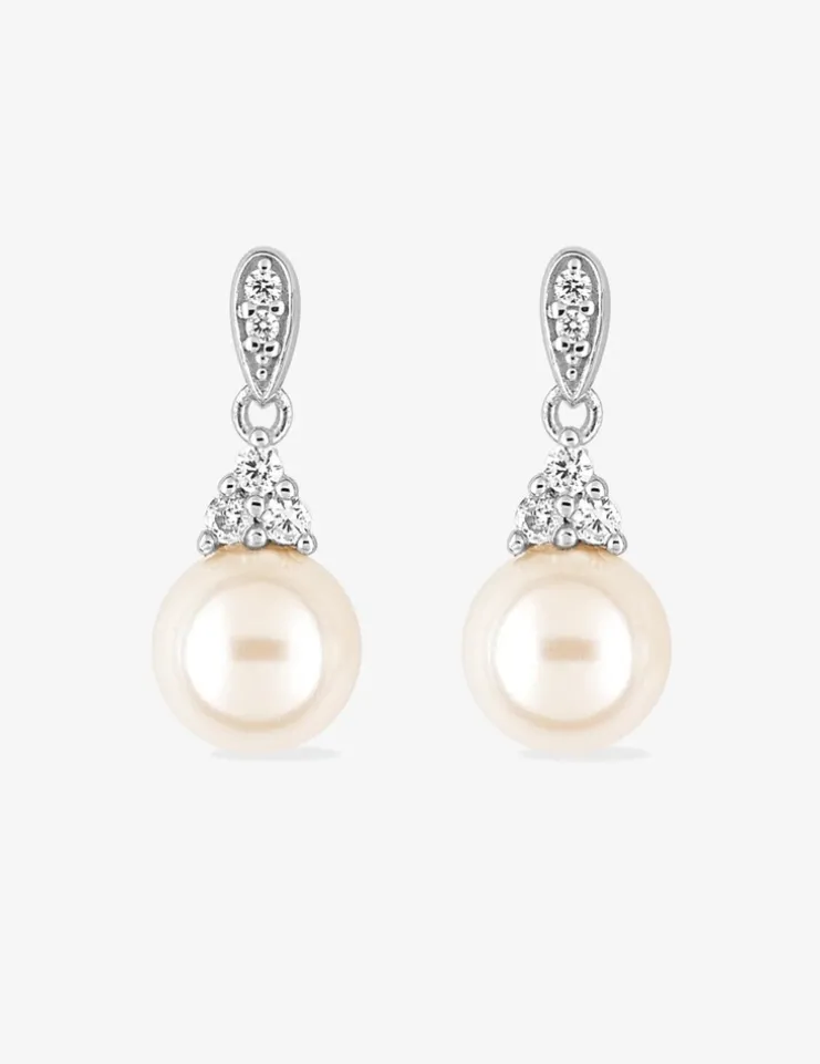 Boucles d’oreilles clous perles d’imitation en argent rhodié 925‰. Le poids de cette paire de boucles d’oreilles est de 0,90 g. La taille des perles est de 6 mm. Elles sont équipées d’un fermoir poussette. Un modèle ravissant.