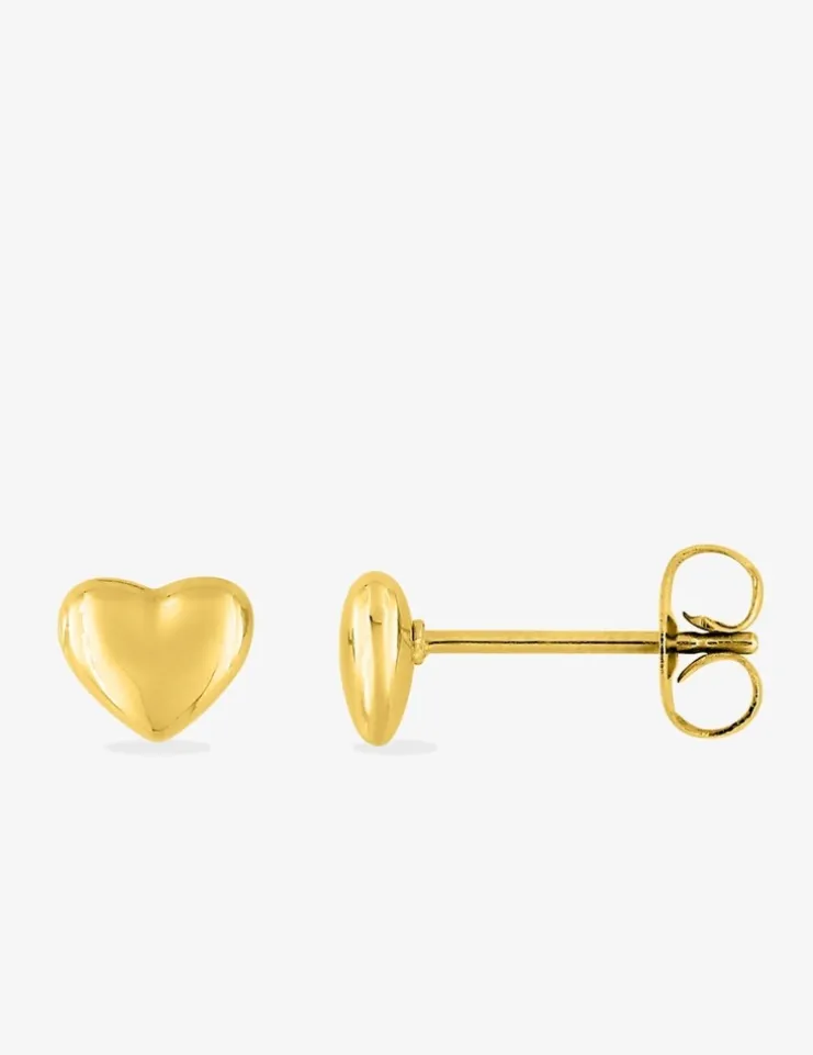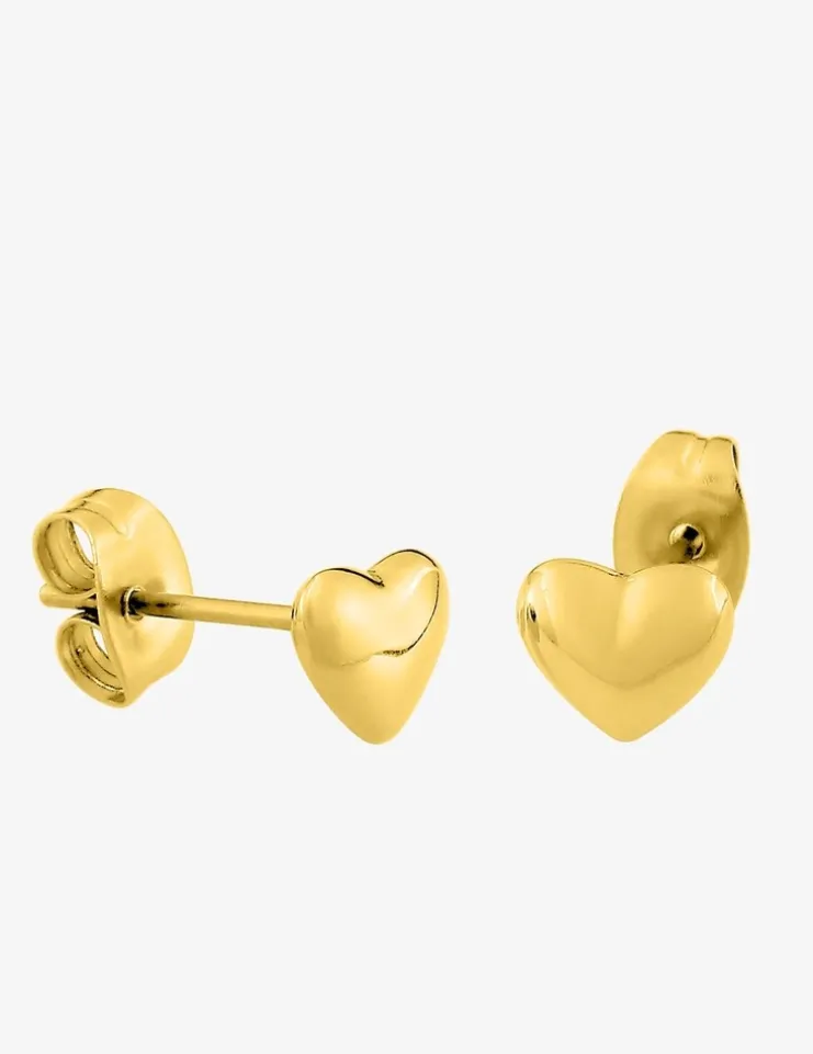 Craquez pour ces adorables boucles d’oreilles clous en acier doré. Elles prennent la forme d’un cœur de 7 mm par 6 mm, et elles se ferment avec une poussette belge.