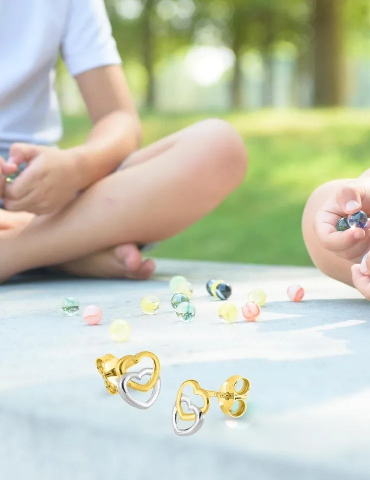 Boucles d'oreilles cœurs or jaune 750 ‰ et rhodium SO OR
