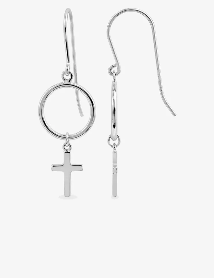 Boucles d'oreilles crochet cercle et croix argent 925‰ rhodié SO OR