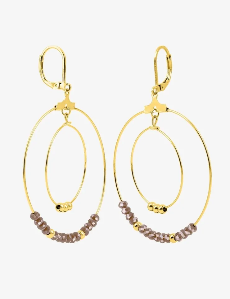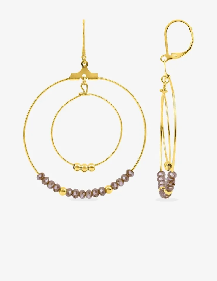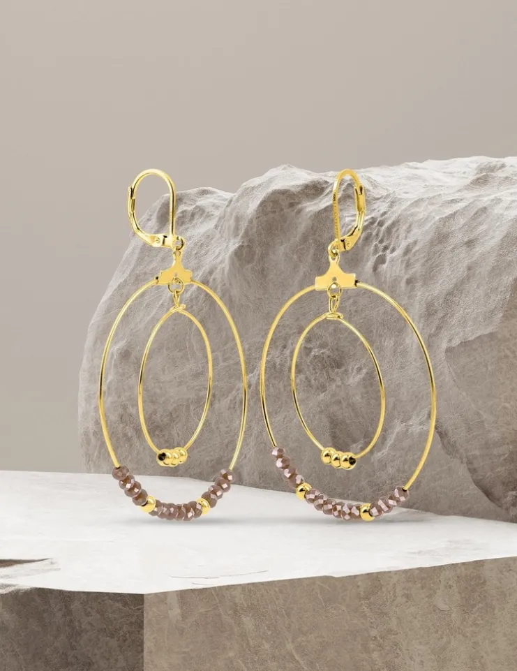 Boucles d'oreilles fantaisie cristal rose et acier doré SO OR