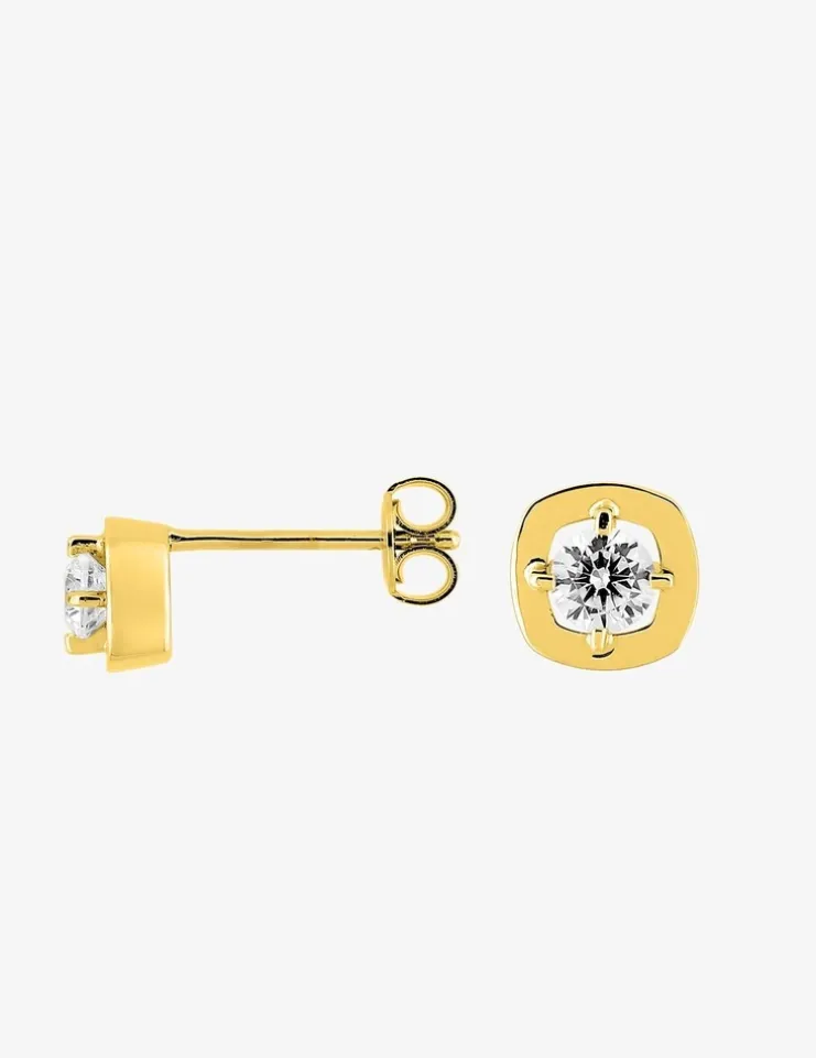 Ces boucles d’oreilles Glamour en plaqué or sont le bijou indispensable pour toutes les femmes tendance. Que vous les portiez seule ou en accumulation avec d’autres boucles d’oreilles elles seront parfaites pour terminer tous vos looks. Ornées d’un oxyde de zirconium elles sont la touche d’éclat qui ne vous quittera plus. @ Taille du motif : 7 mm@