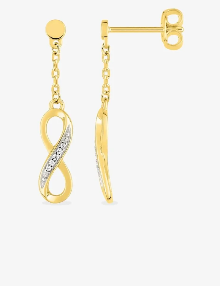 Boucles d'oreilles infini bicolore et chaîne forçat plaqué or, rhodium et oxyde de zirconium SO OR