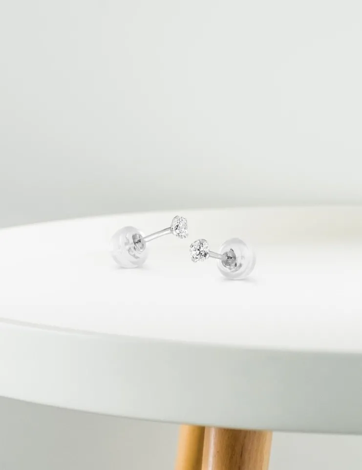 Ces boucles d’oreilles clou en or blanc 375‰ (9 carats) sont serties d’un oxyde de zirconium de 3 mm de diamètre. Ces boucles d’oreilles ont un poids moyen d’or de 0,10 g et un système de fermeture avec des poussettes en silicone.Ces boucles d’oreilles font partie des indispensables de votre garde-robe. Elles se porteront très facilement et agrémenteront en toute discrétion vos tenues.