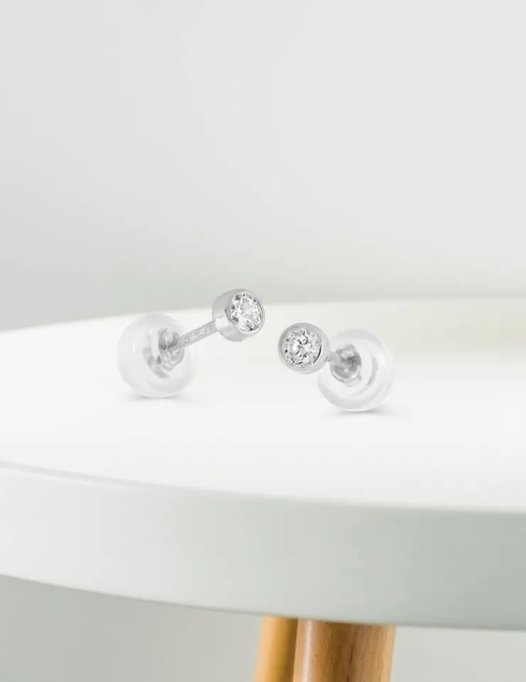 Boucles d'oreilles or blanc 750 ‰, oxyde de zirconium 3 mm serti clos SO OR