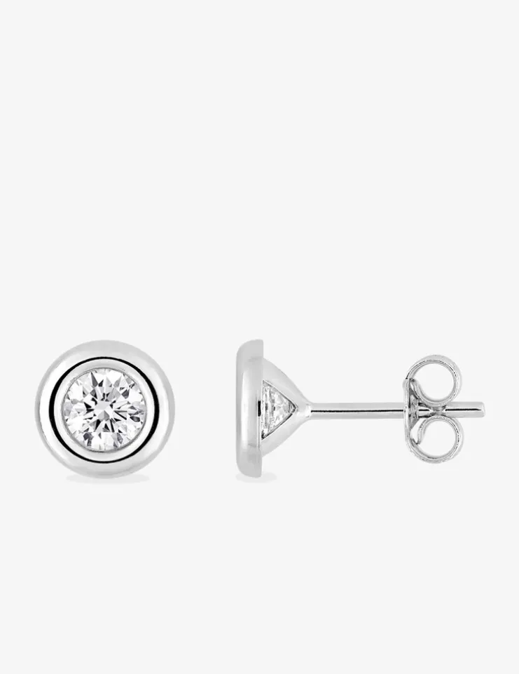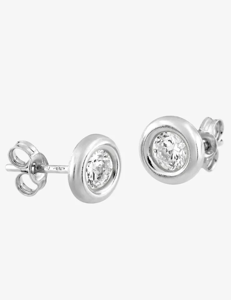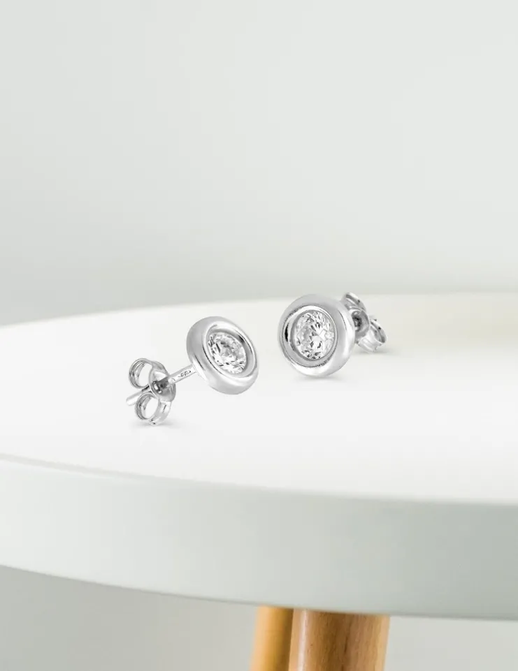 Boucles d'oreilles or blanc 750 ‰, oxyde de zirconium 4 mm serti clos SO OR