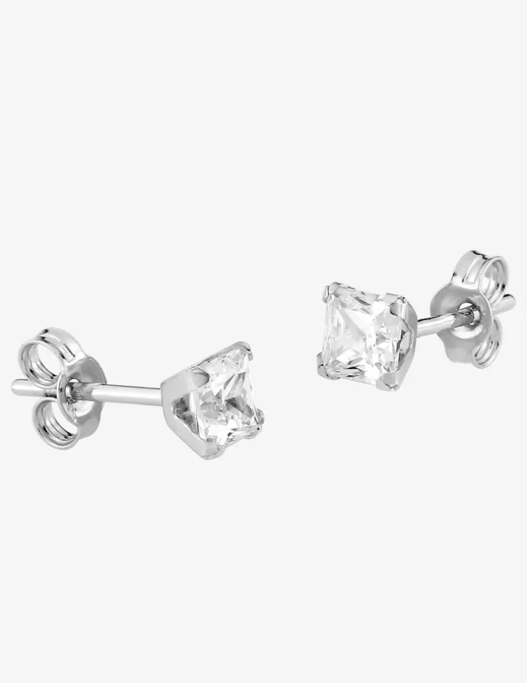 Boucles d'oreilles oxyde de zirconium carré 4 mm or blanc 750‰ SO OR