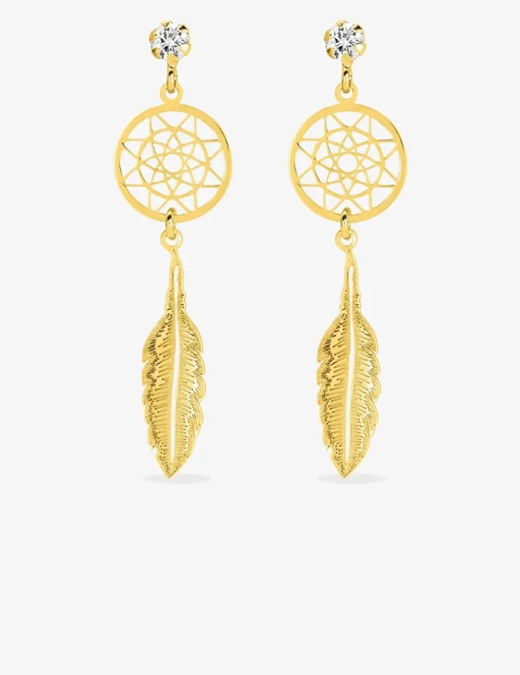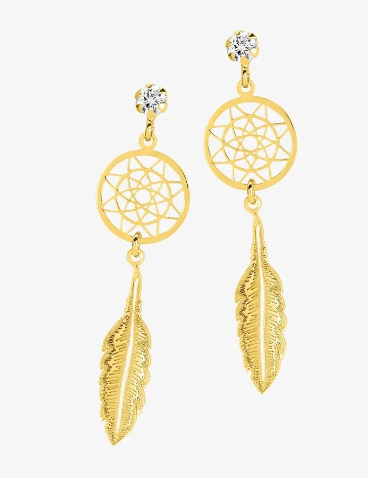 Boucles d'oreilles pendantes attrape-rêve en or jaune 375‰ et oxyde de zirconium SO OR