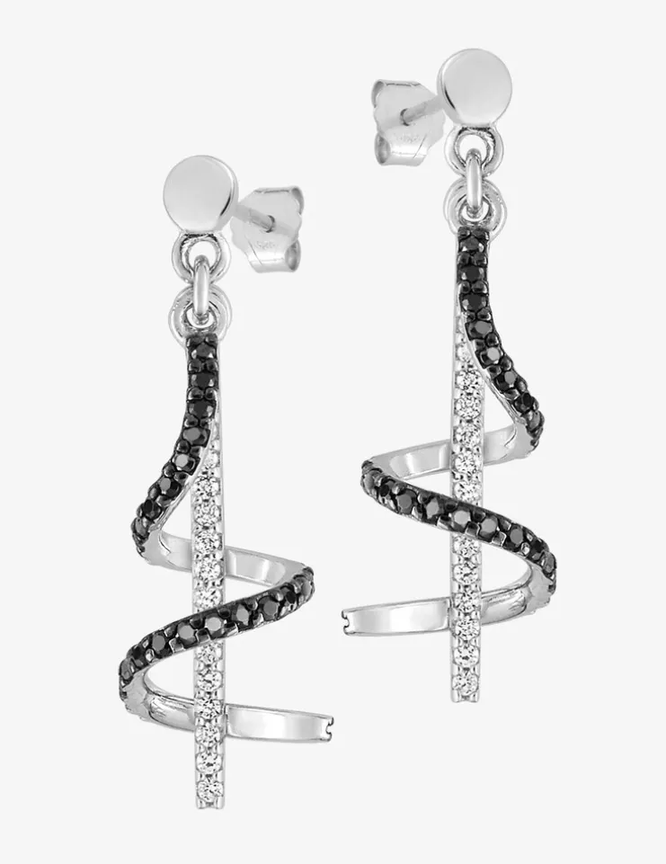 Boucles d'oreilles pendantes bicolores argent rhodié 925‰ avec oxyde de zirconium SO OR
