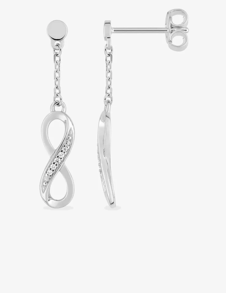 Boucles d'oreilles pendantes motif infini argent rhodié 925‰ avec oxyde de zirconium SO OR