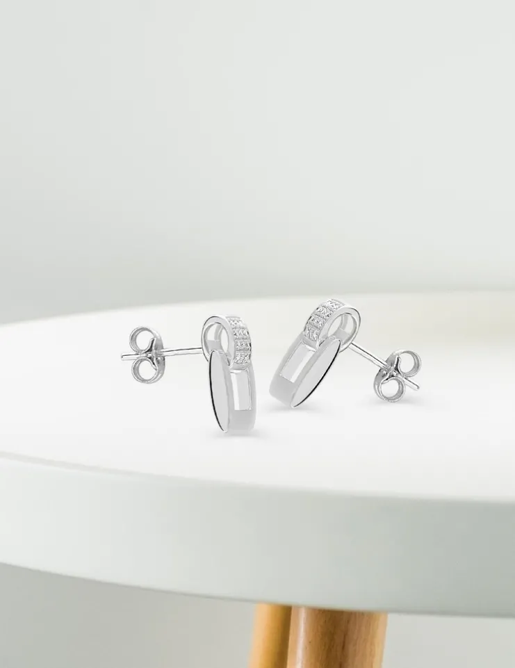 Boucles d'oreilles pendantes or blanc 750 ‰ et oxyde de zirconium SO OR