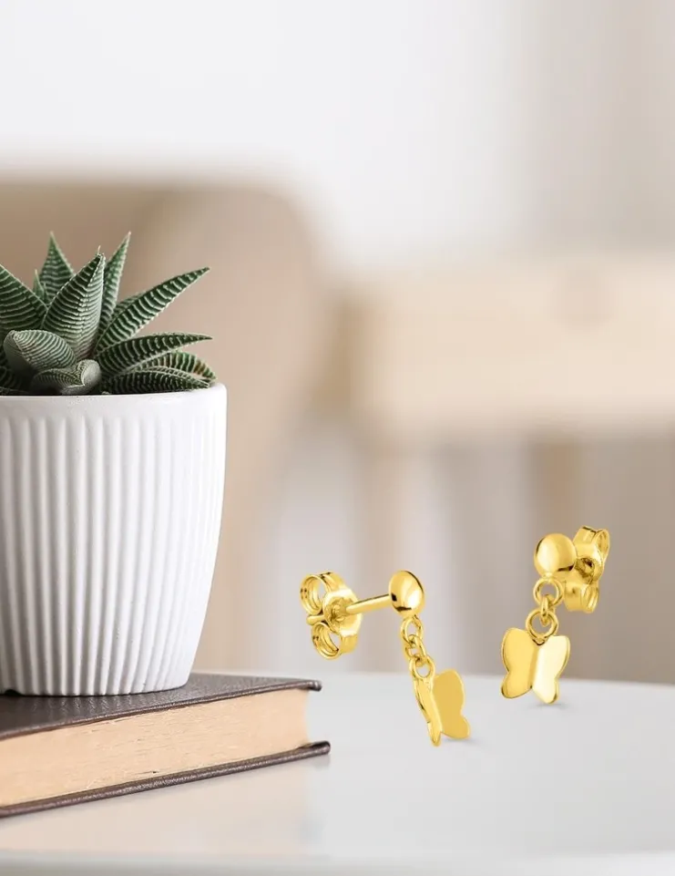 Boucles d'oreilles pendantes papillons or jaune 375‰ SO OR