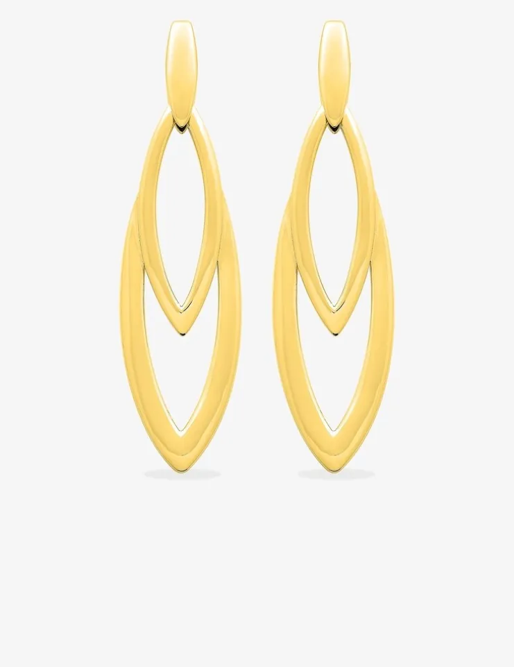 Craquez pour cette sublime paire de boucles d’oreilles pendantes plaqué or. Elles sont de forme ovale et sont imbriquées l’une dans l’autre. Elles se ferment grâce à un fermoir poussette.Une jolie paire de boucles d’oreilles.