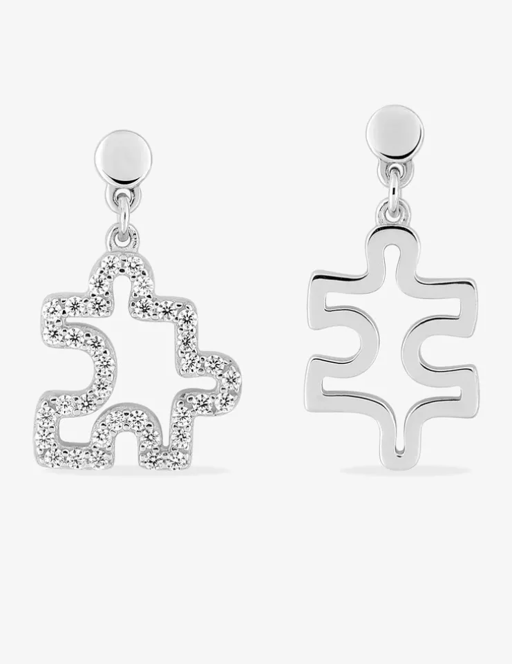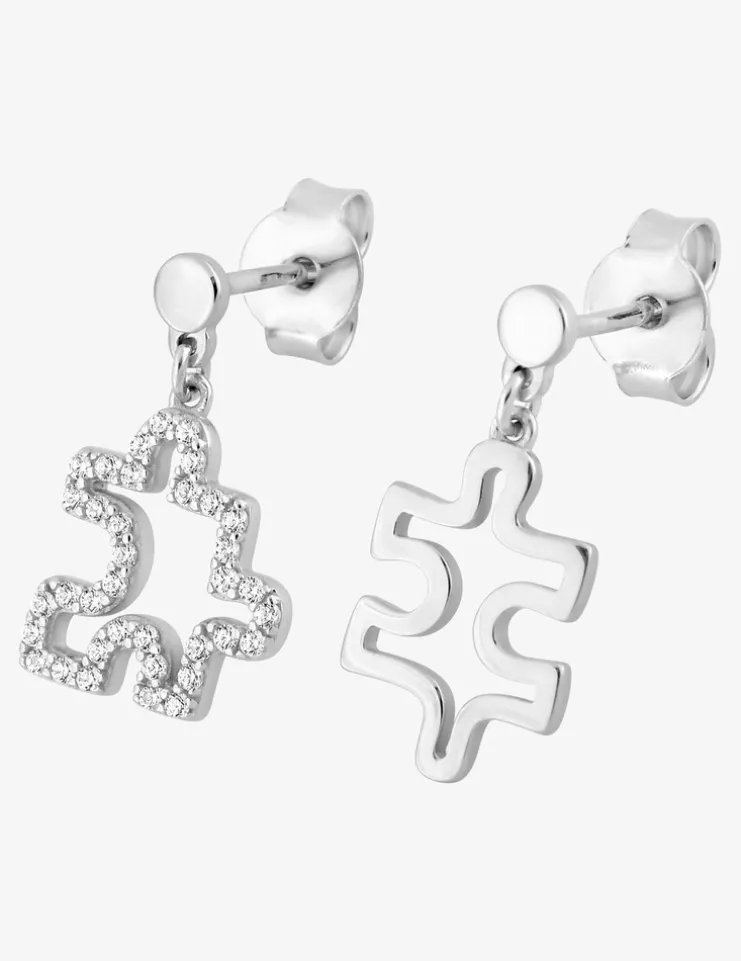 Adoptez ces sublimes boucles d’oreilles en argent 925‰ rhodié. Elles ont un motif de pièce de puzzle. L’une d’entre elles est sertie d’oxydes de zirconium. Les boucles d’oreilles se ferment via un fermoir dit poussette.Des magnifiques boucles d’oreilles que vous pourrez porter au quotidien.