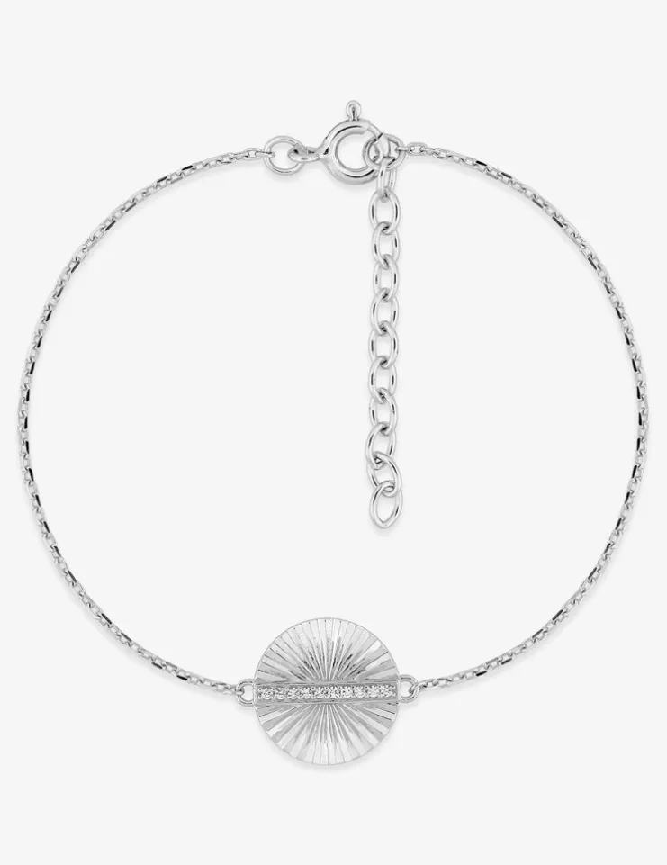 Optez pour ce sublime bracelet en argent 925‰ rhodié.Il est accompagné d’un motif rond dit fantaisie. Au cœur se trouve une forme rectiligne sertie d’oxydes de zirconium.Le bracelet est soutenu par une chaîne forçat de 16 cm avec 3 cm de chaîne de rappel.Il se ferme via un anneau ressort.Un magnifique bracelet à accorder avec vos plus belles tenues.
