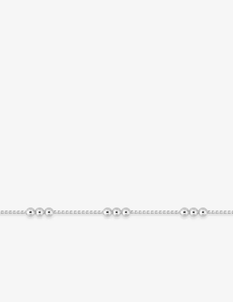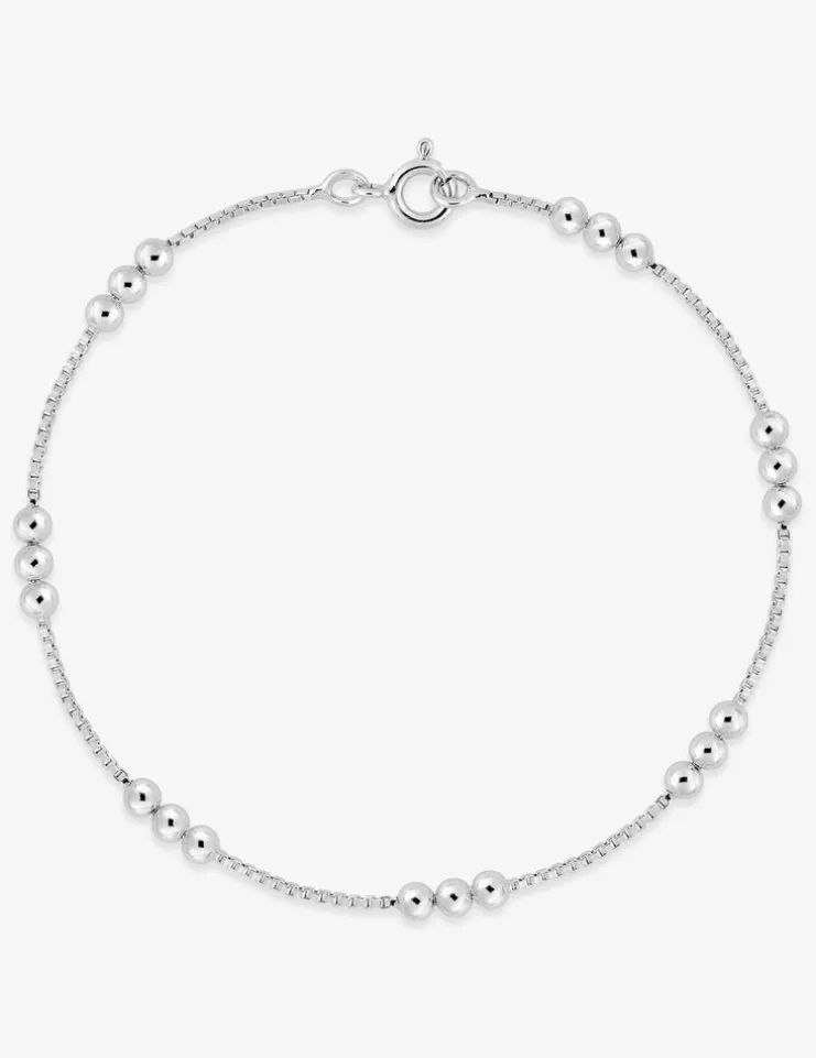 Bracelet en argent 925 ‰ rhodié agrémenté de boules fixes. D’une longueur de 18 cm, il se ferme grâce à un fermoir en anneau ressort, alliant simplicité et élégance.