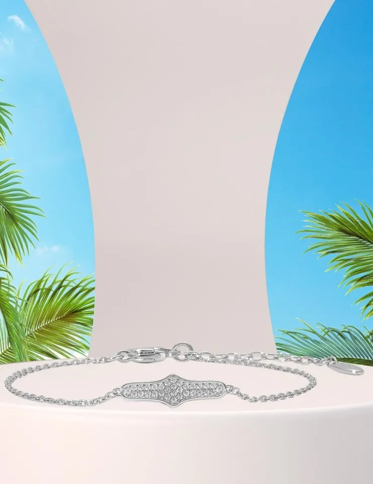 Bracelet en argent 925 ‰, orné d’une plaque centrale fantaisie sertie d’oxydes de zirconium. Avec une taille de 16 cm, extensible de 3 cm supplémentaires, il pèse 2,05 g. Un accessoire élégant qui ajoute une touche brillante et de glamour à votre poignet.