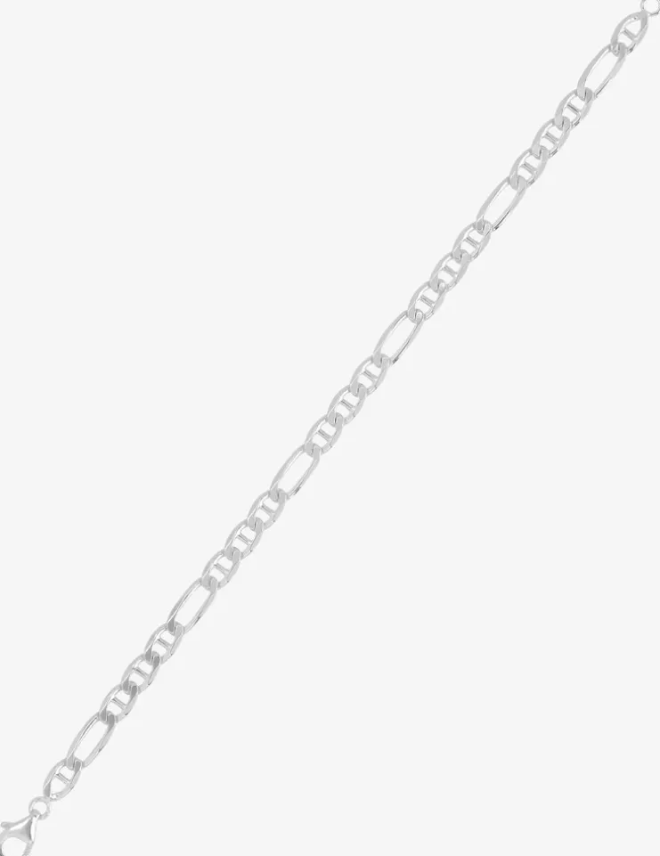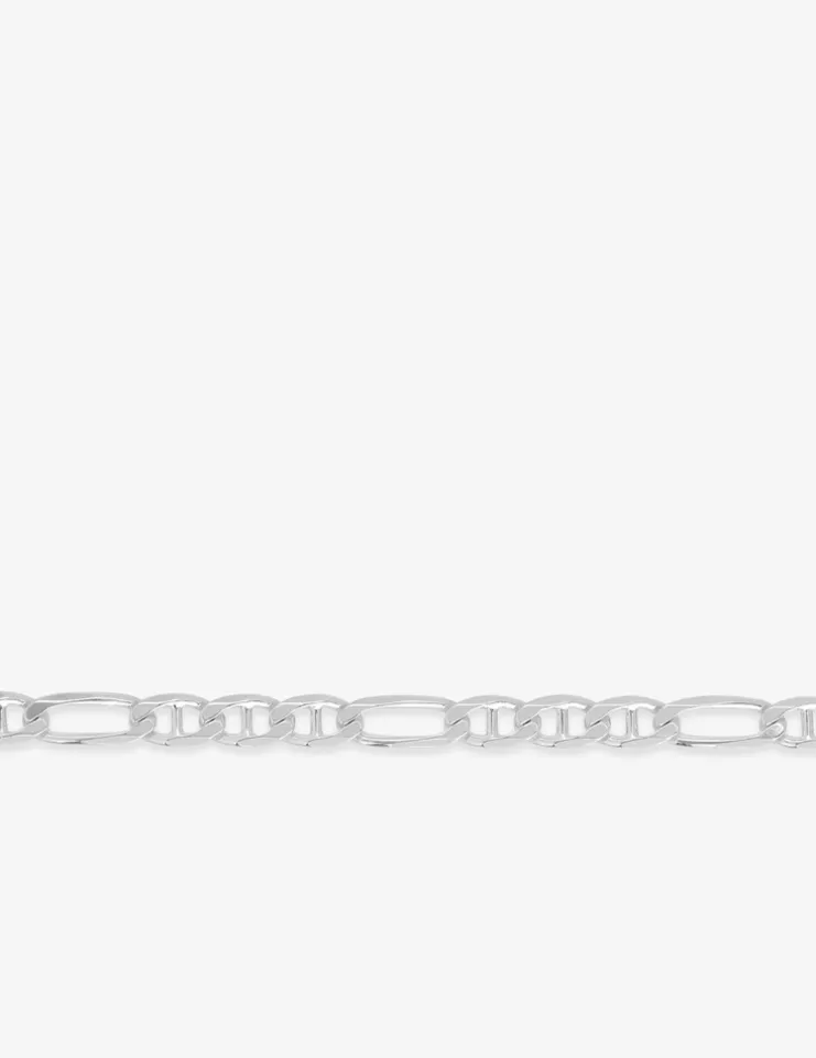 Ce bracelet en argent 925‰ rhodié possède une maille marine alternée 1+3 de 5 mm de largeur et un fermoir mousqueton. Il mesure 19 cm de longueur.