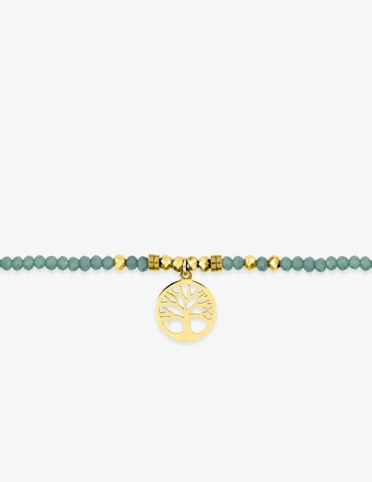 Bracelet élastique en acier inoxydable de la collection APA. Ce bracelet se compose de petites pierres en cristal turquoise et d’une pampille en acier doré avec découpe motif arbre. Ce bracelet est taille unique.La collection acier APA s’adresse aux hommes et aux femmes. Ses bijoux en acier inoxydable ont un style original, fantaisie et coloré, vous pourrez pour certains les associer en parure. Vous trouverez forcément celui qui vous correspond dans le vaste choix de cette collection.
